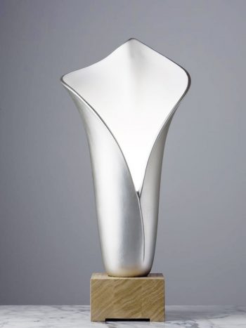 LUNA bietet sich für ein apartes Spiel mit Farben und Stoffen an. Blickfang – die Metallkugel. Sie ruht auf einer Fläche, die wie ein Relief ausgeformt ist, welches die Wellen im Wasser symbolisiert.