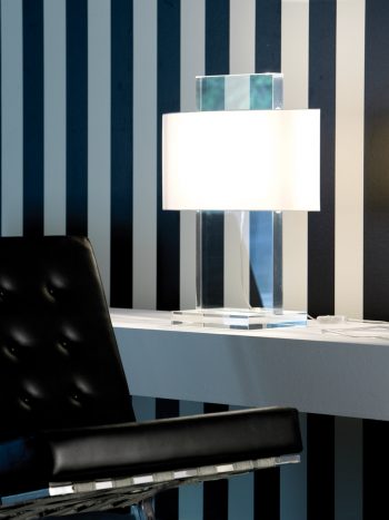 Eine Solitärleuchte wie ein Objekt. Edles Metall schwingt sich zu einer prägnanten Form, nachge- zeichnet durch die separate Beleuchtung im Fuß. Das Licht im Fuß ist gesondert zu schalten.